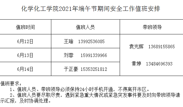 金年会金字招牌诚信至上2021年端午节期间安全工作值班安排