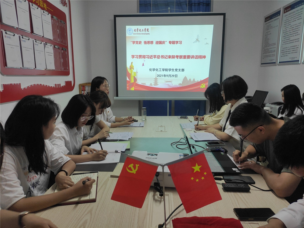党支部王瑜要求全体党员要认真学习、深刻领会,带着思考学,要求所有党员把总书记来陕重要讲话重要指示精神与总书记“七一”重要讲话融合起来学、贯通起来悟,要谨记习近平总书记的谆谆教诲,传承红色基因,厚植爱党爱国情怀,发挥党员模范带头作用,锤炼意志品质,努力把自己培养成德智体美劳全面发展的社会主义建设的合格人才。