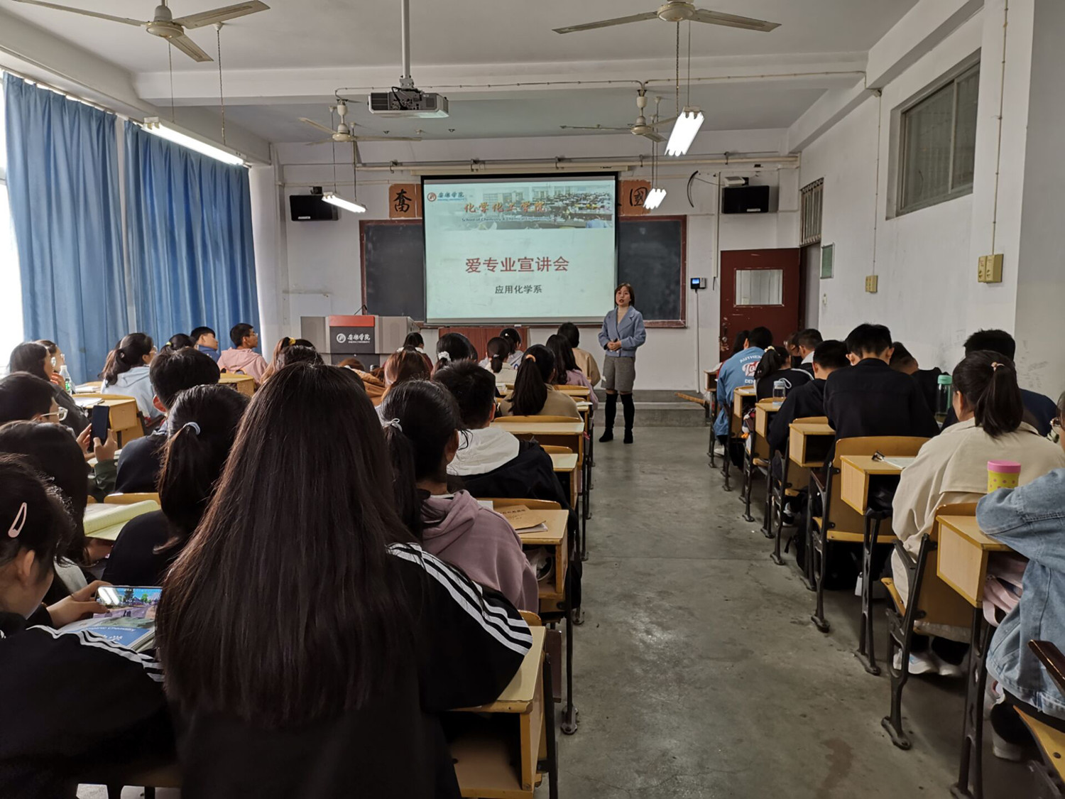 为了使应用化学专业2020级新生尽快了解专业方向、核心课程设置、专业研究领域前沿与应用及对国家发展的重要性,同时引导员工树立正确的专业观和学习观,激发员工的“爱专业”情感和探索精神,应化专业负责人黄婷副经理和系主任张继东老师在10月16日为应用化学专业2020级新生开展了“爱专业”宣讲活动。