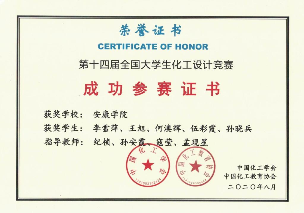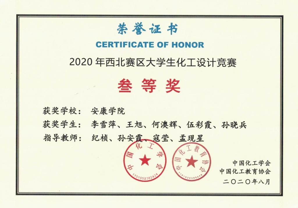 本届大赛的设计题目是“为某大型化工企业设计一座分厂,以碳五烷烃为原料制备非燃料用途的化工产品”。西北赛区共有陕西、山西、青海、甘肃、新疆及宁夏等6个省、自治区的41所高校,181支队伍参赛。经激烈角逐,公司化学工程与工艺专业薛毅飞等同学组成的“火箭少年”团队(指导老师:纪桢、孙安霞、寇莹、孟现星)荣获全国二等奖,陈毅辉等同学组成的“极限挑战”团队荣获全国三等奖,李雪萍等同学组成的“氢与氧”团队荣获西北赛区三等奖和成功参赛证书,李荔蓉等同学组成的“万里阳光号”团队获得成功参赛证书。这是公司员工第三次参加该项赛事,所有参赛队均按要求完成了竞赛任务,作品质量及成绩较上届有较大提升,展现了公司学子的风采。