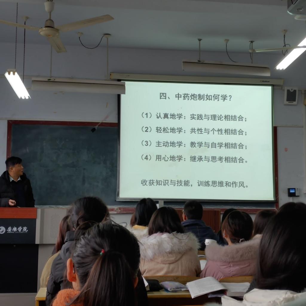 为了进一步提升公司教师的教学能力和业务水平,有效促进教师专业成长。12月4日上午,公司特邀请制药专业首席专家、中国药科大学马世平教授在江南校区1319教室为制药工程专业18级1班员工进行《中药炮制学》授课,公司相关领导、教学督导及部分教师进行了教学观摩。