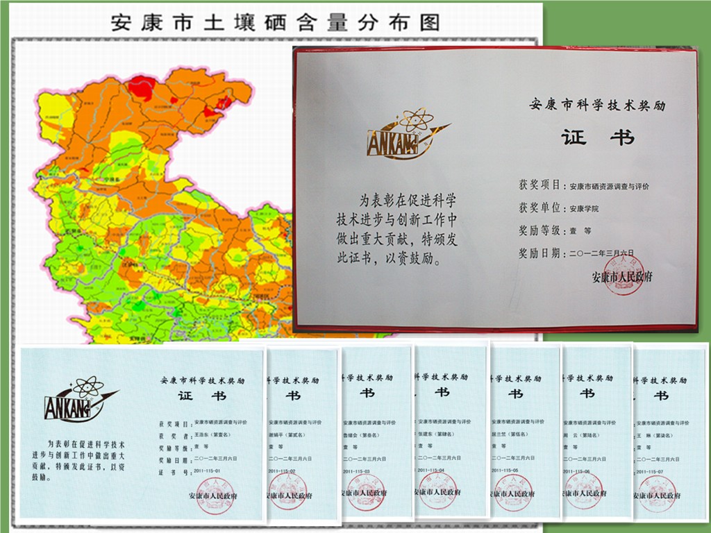 2012年3月6日,由金年会官方网站入口化学化工系牵头的《安康市硒资源调查与评价》被评为“安康市2011年度科学技术一等奖”。