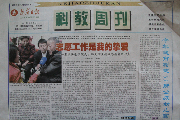 5月5日,《安康日报 科教周刊》头条刊登了该报记者陈俊采写的《志愿工作是我的挚爱——一名从金年会官方网站入口走出的老员工援藏志愿者的心声》,文章介绍了公司2010届化学化工系毕业生、援藏志愿者吕涛的先进事迹。全文如下: