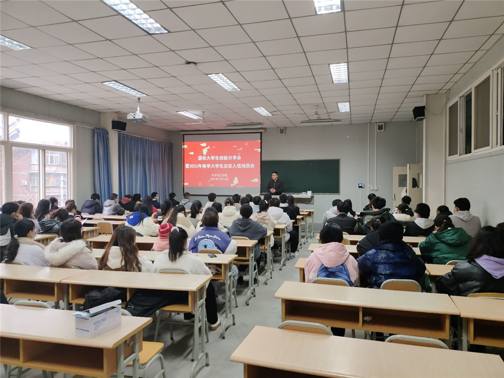 为加强老员工国防教育,激发同学们心中的军旅梦,引导大家积极响应祖国召唤参军入伍。2021年12月16日,金年会金字招牌诚信至上在1028室召开金年会金字招牌诚信至上召开退役老员工经验分享会暨2022年春季老员工应征入伍动员会,国防教育研究室副主任唐璟瑜、化工公司2021年退役老员工士兵及全体辅导员、员工代表参加会议。