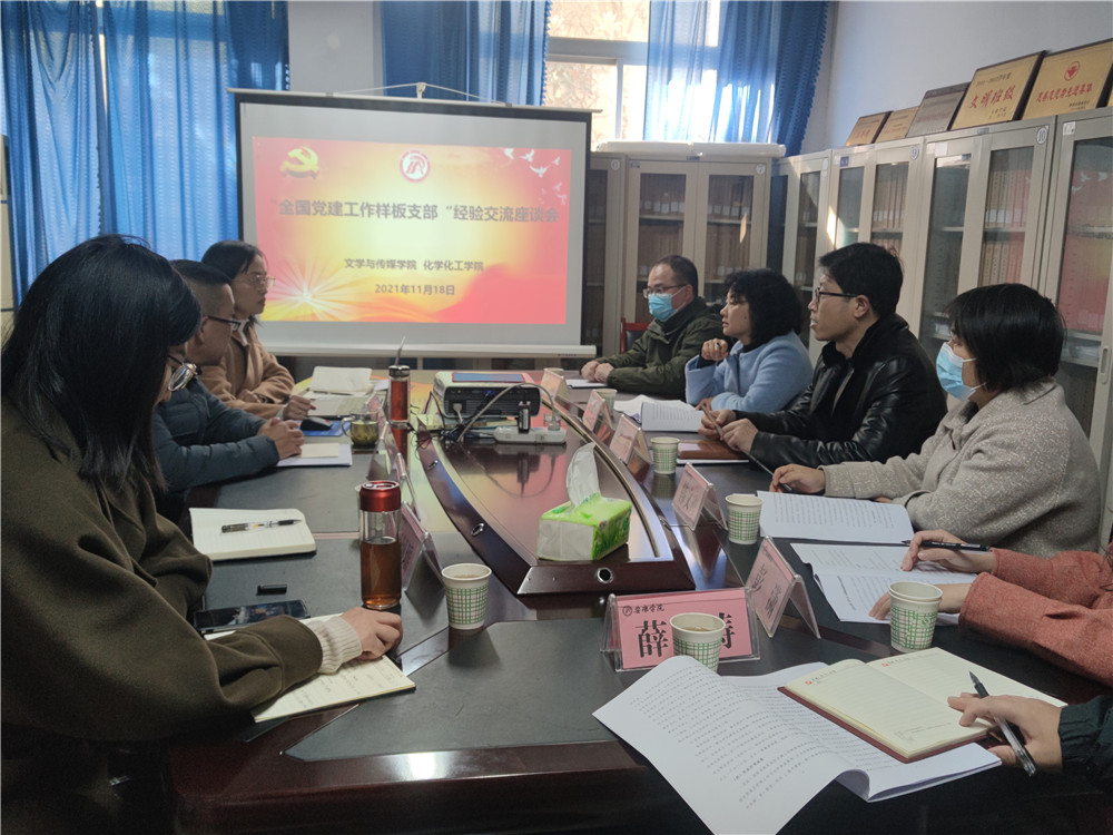 2021年11月18日,文学与传媒公司党总支同化学化工公司党总支在1325会议室举行基层党建工作经验交流会。文学与传媒公司党总支书记芦伟,党总支副书记杨海蓉,教工支部及员工支部书记一行6人同公司党总支书记王永东、员工党支部书记王瑜等进行交流座谈。