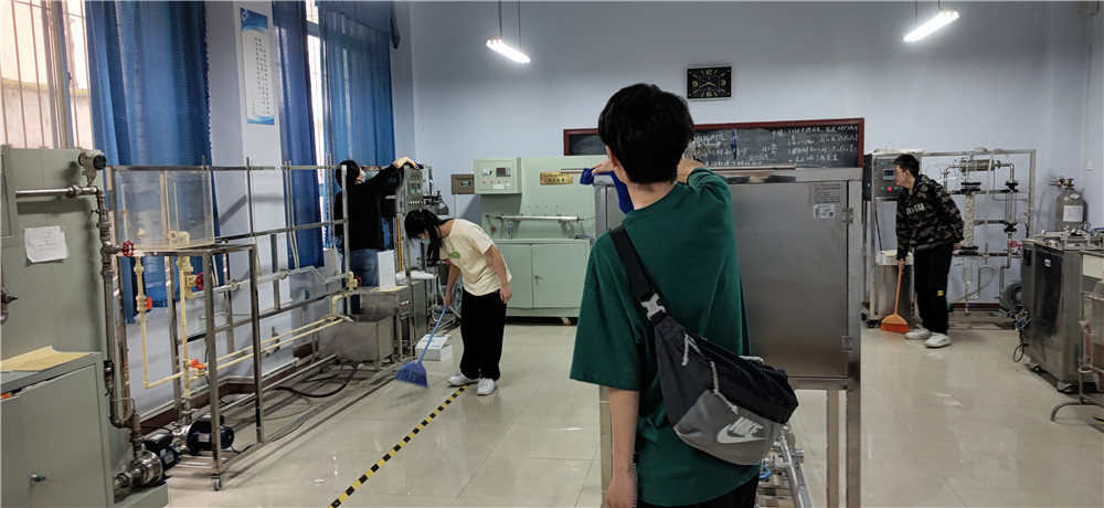 活动开展期间,2020级所有同学在各组组长的组织带领下,协助实验室管理老师对实验室进行打扫。在打扫的过程中,同学们热情饱满,积极主动地拿起清扫工具,仔细擦拭仪器、窗台,认真清扫地面灰尘,不放过任何一个落尘角落。