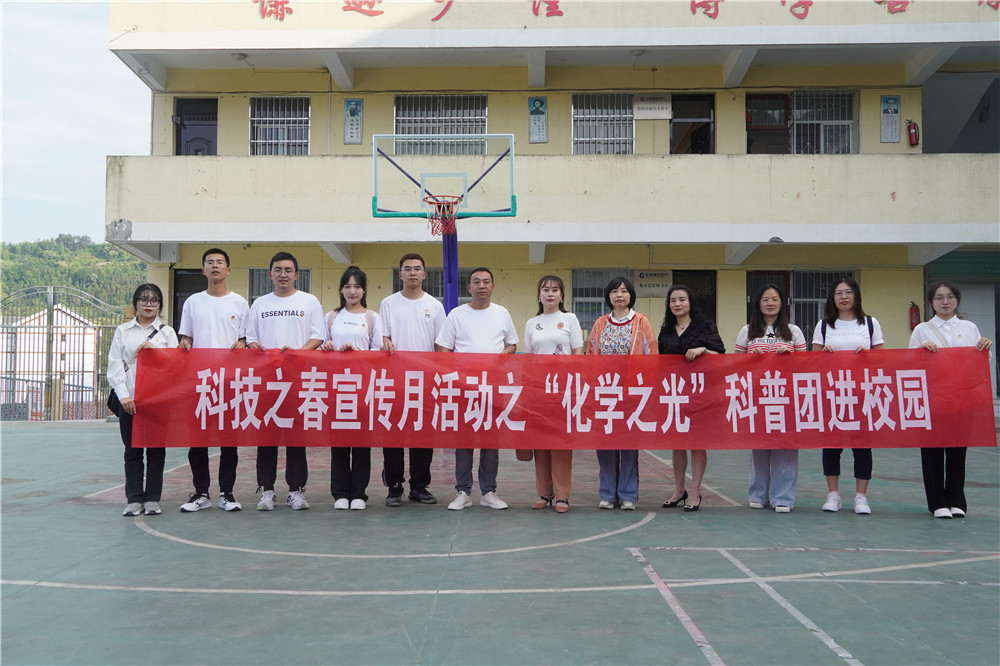 科研报国,作育英才。为激发小朋友们对化学的兴趣,引导青少年探索化学世界的奥秘,助力孩童的科学梦想,“化学之光”科普团于6月1日下午赴汉滨区县河镇财梁九年制公司开展科普活动。参与本次活动的有金年会金字招牌诚信至上教工一支部书记、副经理黄婷老师、化工系副主任寇莹老师、刘蓉老师、王雪老师及部分科普团成员。