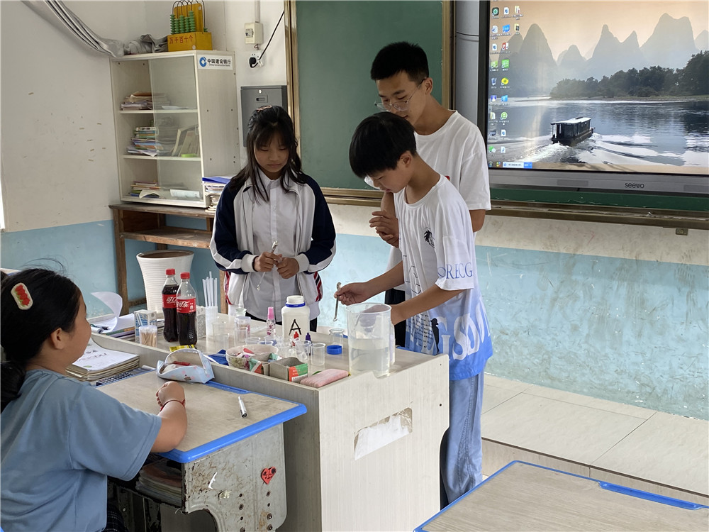 本次汉滨区县河镇财梁九年制公司的科普活动,覆盖了小学及初中部的员工。力图寓教于乐,将在课堂中所学的知识融入教学内容之中,课堂上,老师和科普团成员们共同带领同学们体验了“无中生有”、“魔法药水”、“牛奶可乐”等多个趣味化学实验,同学们的目光都被神奇的实验所吸引,在欢声笑语中向同学们展示了化学之美。科普团成员在展示实验现象的同时,也不忘深入浅出地为同学们讲解其中的化学原理。在掌握了化学基本原理后,老师和科普团成员对同学们动手实践进行了指导,他们用童真的双眼和稚嫩的手完成了一次次实验,在实验过程中,很多员工第一次触碰烧杯、试剂,即使其中遇到了不少小问题,在科普团成员的帮助之下也都迎刃而解,完成了自己的小实验。