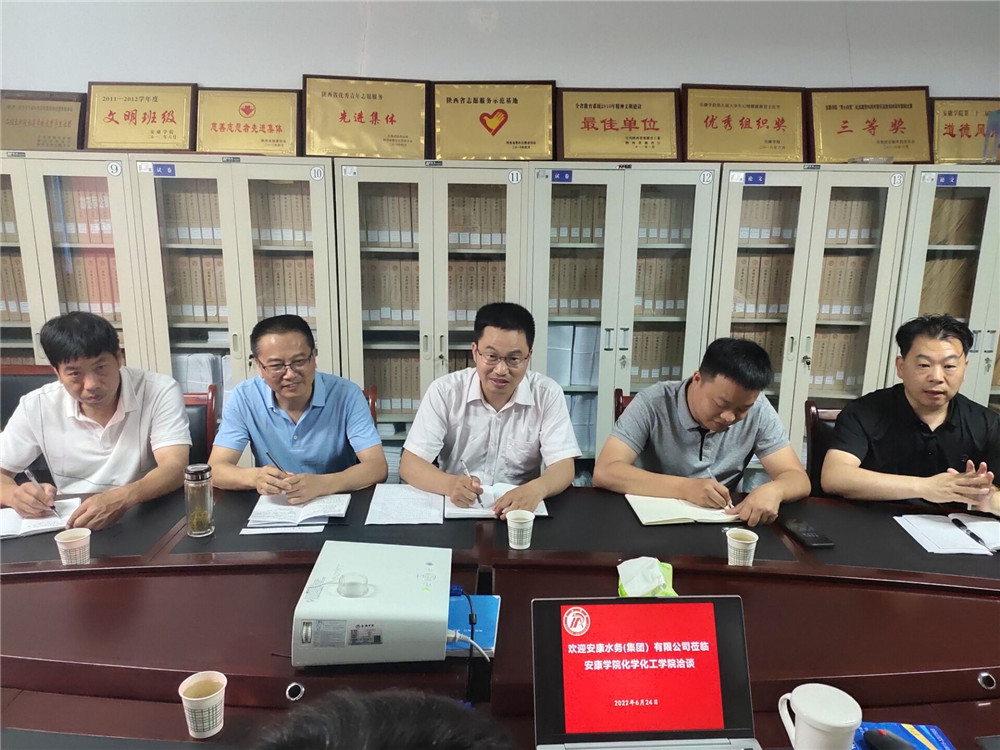 6月24日下午,安康水务(集团)有限公司一行8人来公司洽谈校企合作事宜。柳林经理、黄婷副经理、应用化学系教师参与此次洽谈。