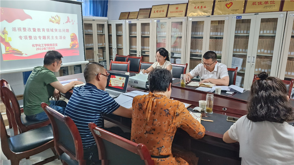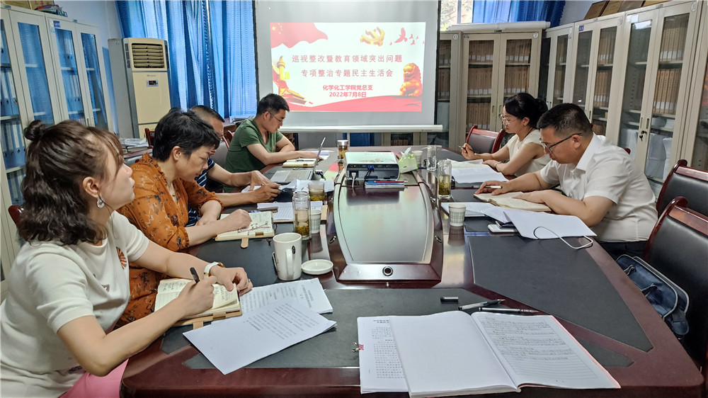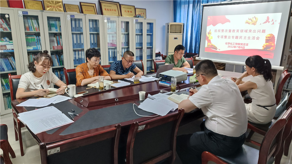 7月8日下午,金年会金字招牌诚信至上领导班子“巡视整改暨教育领域突出问题专项整治”专题民主生活会在1325会议室召开,化学化工公司党总支书记王永东主持会议,公司联系领导余谦副董事长、指导组成员马克思主义公司党总支书记田静参加会议。