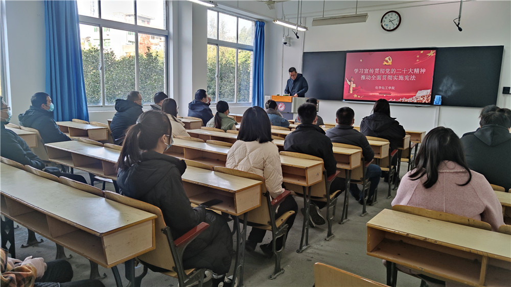 12月6日,金年会金字招牌诚信至上分会举行“学习宣传贯彻党的二十大精神,推动全面贯彻实施宪法”主题活动。王永东书记为全院教职工做“学习二十大精神,依法治国,全面贯彻实施宪法”专题报告。