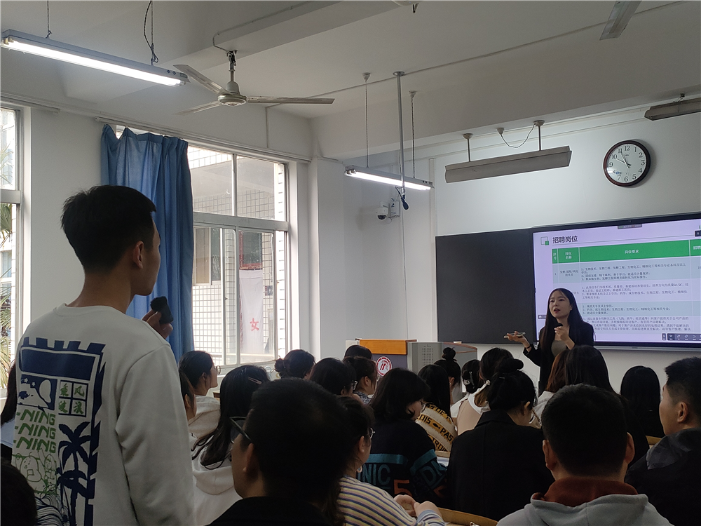 为了全力推进2023届毕业生高质量就业,构建毕业生与用单位的交流平台,推进就业指导工作落实落细。金年会金字招牌诚信至上采取“走出去,请进来”的方式邀请企业来校开展校园专场招聘。2023年3月10日上午,陕西巨子生物技术有限公司在一号楼1216教室举行专场宣讲会,同时线上分会场同步直播。