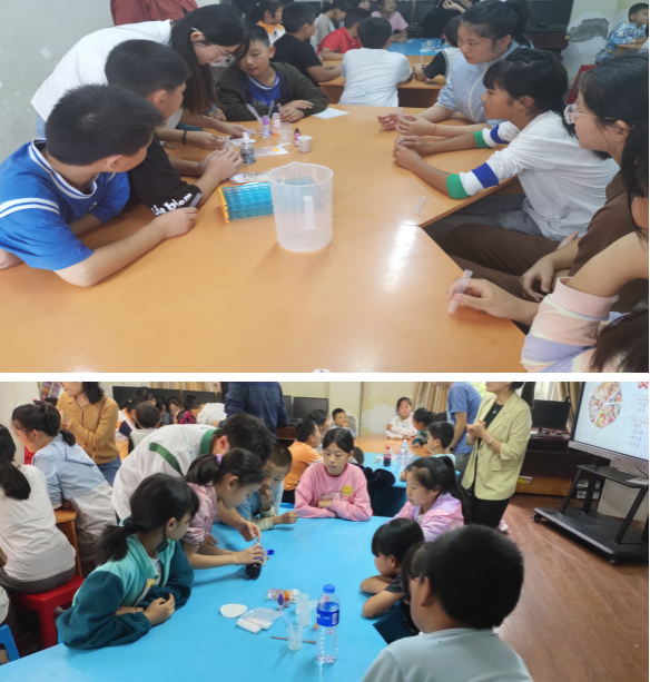 在趣味实验环节,公司老师和员工带去的众多神奇的实验吸引了孩子们的目光,“魔法药水”、“无中生有”、“牛奶可乐”、“星火燎原”等让小学的孩子们看得目不转睛,惊叹连连。小员工们十分积极活跃,争先恐后想要来尝试,现场气氛热烈,欢呼声和掌声此起彼伏。整个活动充满了活力,大家在愉快的氛围中将科普知识牢记于心。