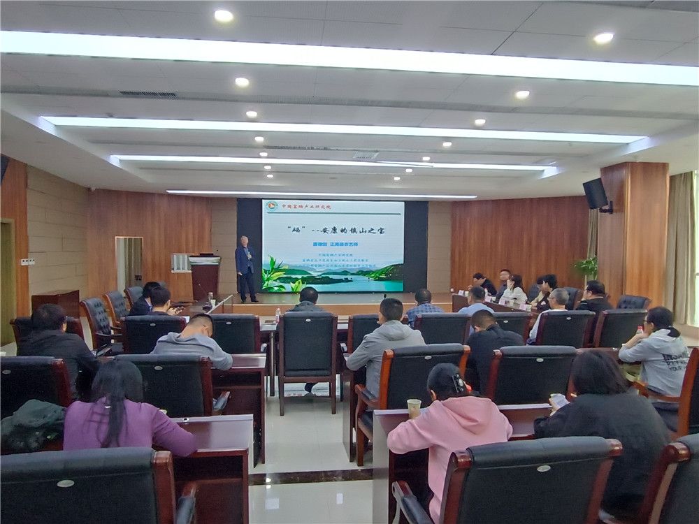 会上,安康市富硒产品研发中心副主任、农业农村部富硒产品开发与治理控制重点实验室主任、高级农艺师唐德剑为大家做了题为“硒-安康的镇山之宝”学术报告。报告从“硒是什么”、“中国硒资源分布”、“安康硒资源现状”、“硒与医疗健康”等相关知识,重点介绍了“安康富硒自信”——全国最大的天然富硒区,被誉为“中国硒谷”;被专家评价为“优质、环保、安全”的富硒区域;拥有“天然富硒”+“特色生物”+“最佳生态”=全国“唯一”的独特区域优势资源。报告总结了安康富硒产业发展成就及安康富硒产业发展面临的难题,提出当前安康富硒产业发展迫切需要解决的科研问题。