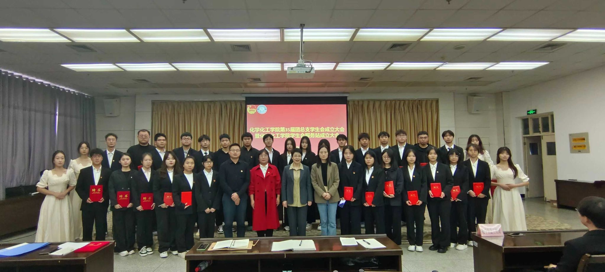 柳林为团总支员工会主席团成员颁发聘书。