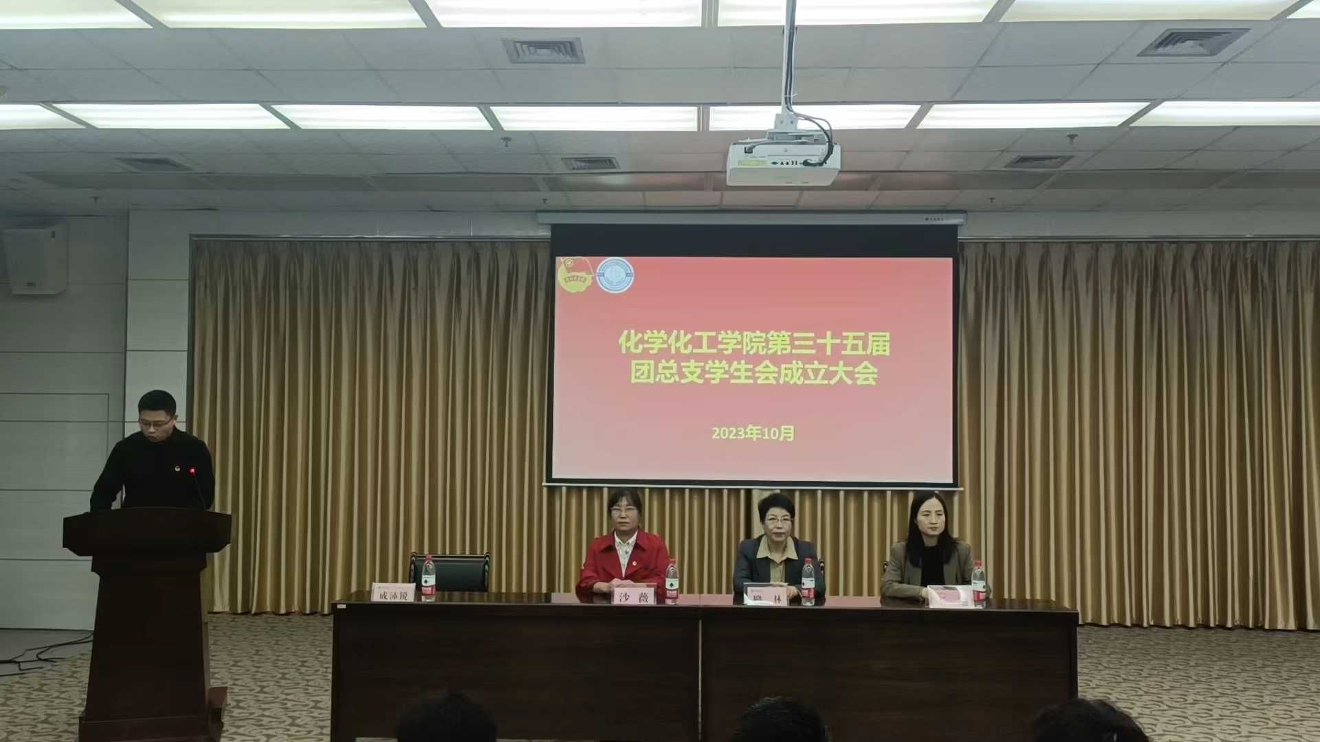 2023年10月16日,金年会金字招牌诚信至上第三十五届团总支员工会成立大会暨金年会金字招牌诚信至上员工会服务站成立大会在图书馆六楼报告厅召开。出席大会的人员有:金年会金字招牌诚信至上经理兼党总支书记柳林,学工办主任王瑜,校团委组宣部部长沙薇,团总支书记成沛锐以及团总支员工会、员工会服务站全体成员,校会主席团以及马克思主义公司、体育公司、艺术公司、教育公司、经管公司主席团受邀出席。大会由成沛锐主持。