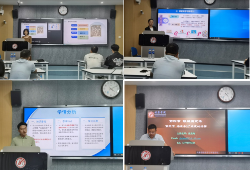 第三阶段5月29日下午14:30在1205参赛选手分别进行模拟授课和说课。参赛教师结合课程教学大纲与教学实践,从课程教学目标、教学目标与毕业要求指标点的支撑关系、教学内容、教学方法、考核方式、员工学习成效达成情况等方面进行说课。比赛中教师们娴熟运用“雨课堂”等智慧平台,整合课程教学资源,融入“以员工为中心”“课程育人”等先进教学理念,既注重知识传授,又注重价值引领,精彩纷呈。