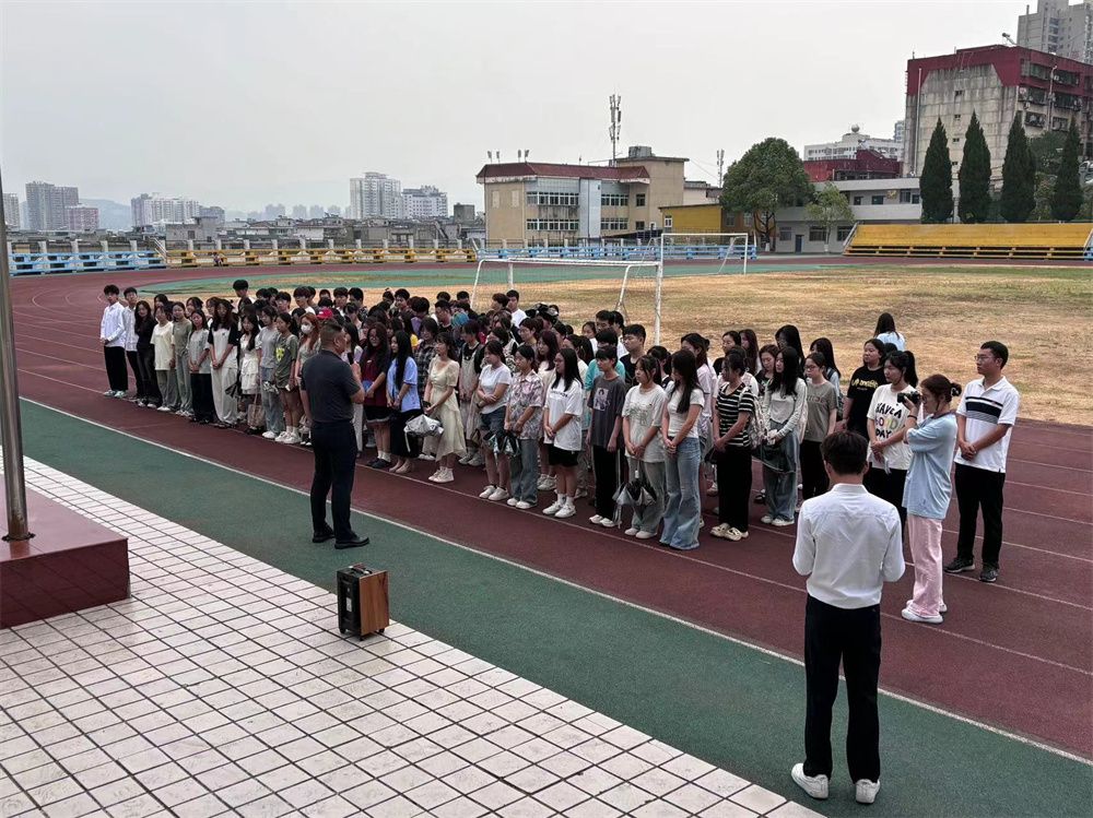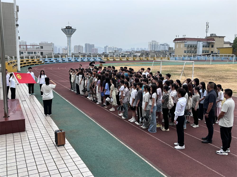 9月9日上午,金年会金字招牌诚信至上组织师生代表开展爱国主义仪式教育。党总支副书记程国栋、团总支书记成沛锐、辅导员谢德安及员工团员代表共100余人参加本次活动。本次活动由成沛锐主持。