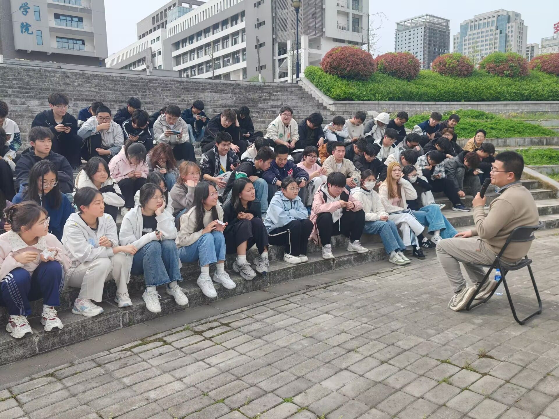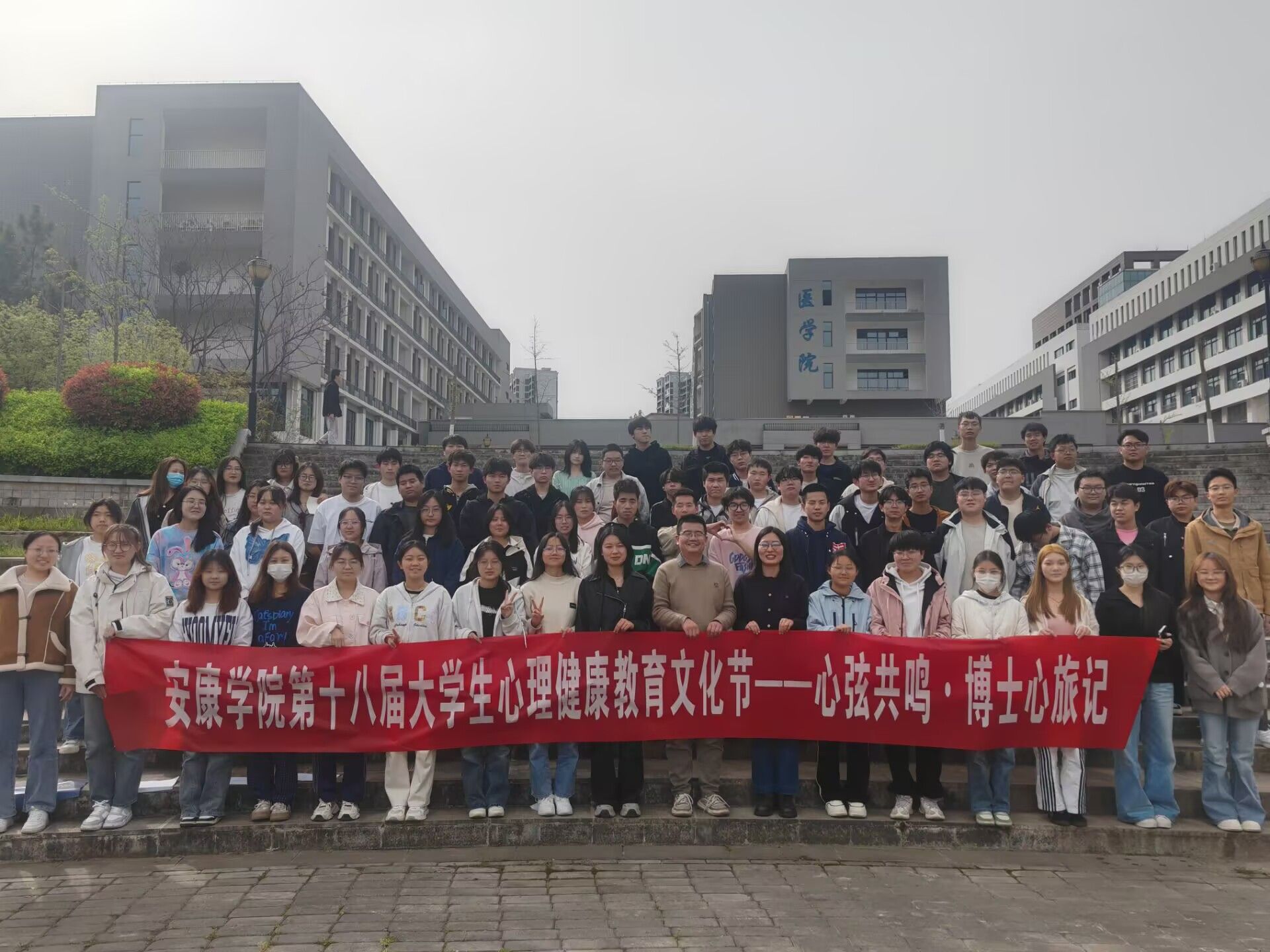 3月31日,公司承办的金年会官方网站入口第十八届老员工心理健康教育文化节特色活动---“心弦共鸣·博士心旅记”在江北校区滨湖广场拉开序幕,本次活动由闫超咸博士主讲、辅导员许珂瑶主持、90余名来自不同公司同学参加了本次活动。